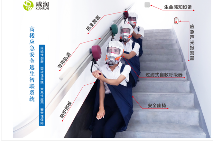 “高樓應(yīng)急安全逃生智聯(lián)系統(tǒng)”項目,可有效解決高層建筑及各類人員密集場所內(nèi)涉險人員的群體性緊急疏散難題, 在傳統(tǒng)“防、消、救”的層面上,增加了“逃”的功能。當發(fā)生火災(zāi)等緊急情況時,第一時間實現(xiàn)聯(lián)動報警,百米高層3分鐘快速逃生,高效有序撤離至地面安全地帶。同時結(jié)合物聯(lián)網(wǎng)+功能,對樓內(nèi)人員進行生命探測、位置追蹤,為消防隊員提供精準救援信息,將主動自救互救和協(xié)同組織救援緊密結(jié)合,有效提高救援全過程質(zhì)效,降低人員密集場所群死群傷重特大火災(zāi)事故的發(fā)生幾率,扭轉(zhuǎn)重特大事故多發(fā)被動局面,減少人員傷亡及財產(chǎn)損失,全方面保障人民生命財產(chǎn)安全,填補人員密集場所緊急疏散基礎(chǔ)設(shè)施建設(shè)空白。